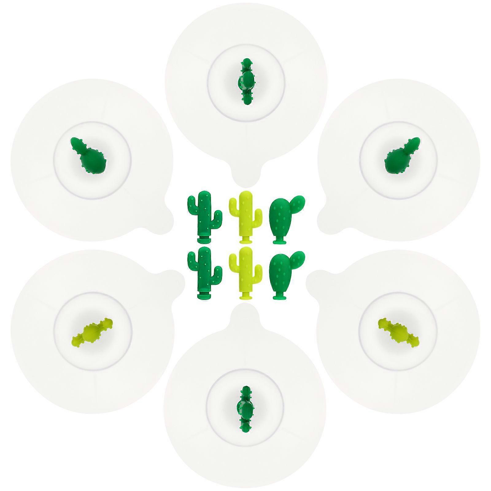 6 Pcs Round Leak-Proof Silicone Cup Lids Dustproof Cartoon Cactus Suction Sealed Mug Covers