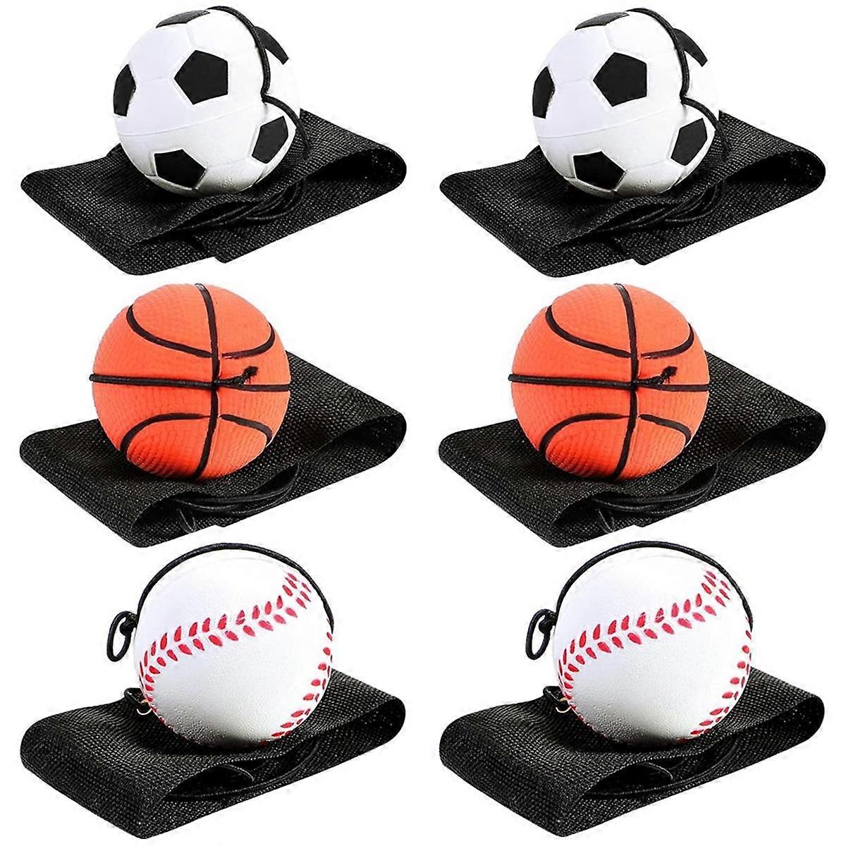6 Pcs Wrist Return Ball Sports Wrist Ball Includes Basketball, Baseball and Football on a String Rubber Rebound Ball