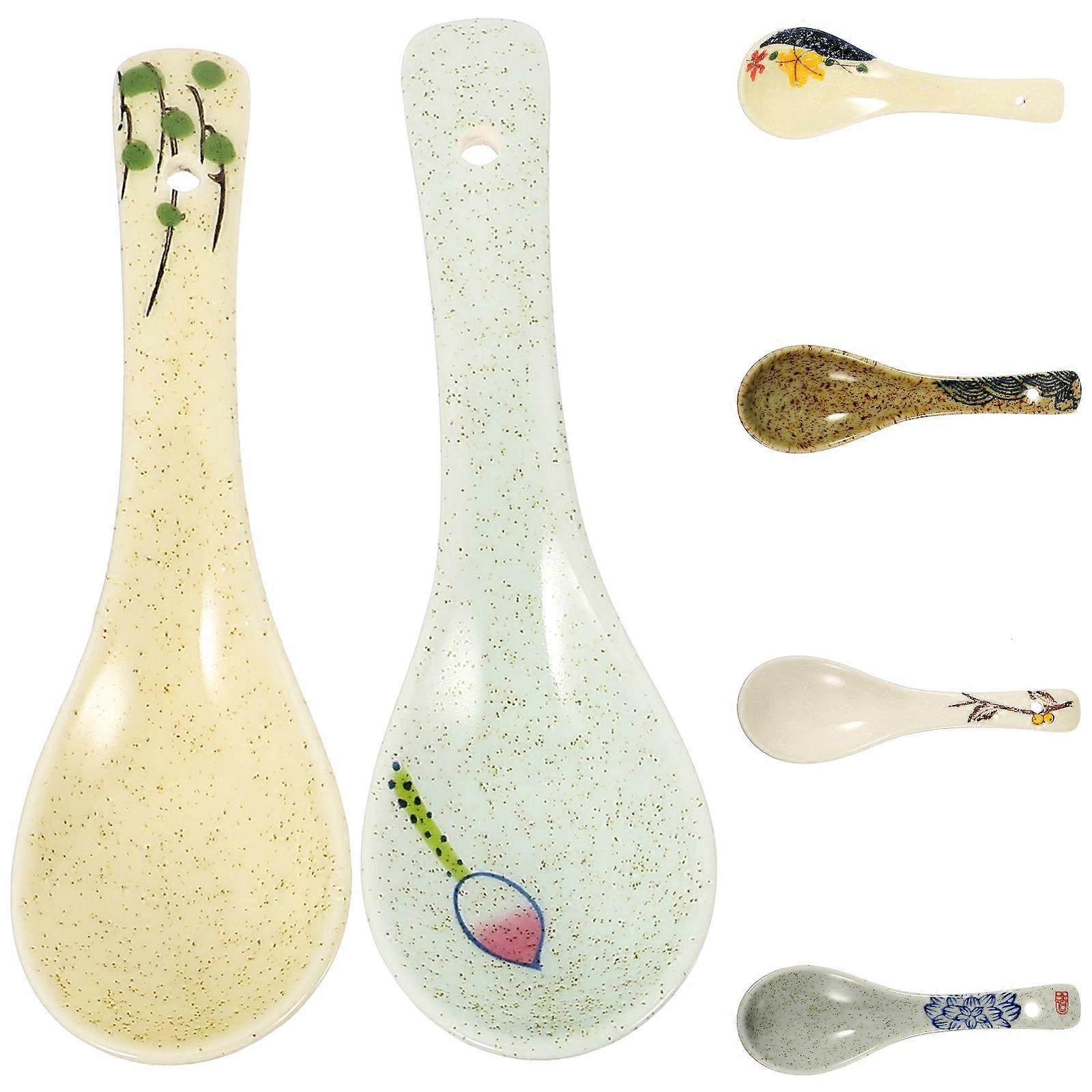 6Pcs Japanese Soup Spoon Japanese Porridge Spoon Ceramic Tablespoon Short Handle Spoon Random Style