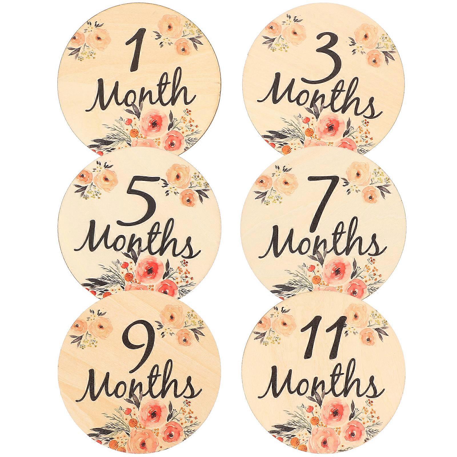 6 pcs Wooden Baby Monthly Milestone Cards Double Sided Newborn Monthly Milestone Signs