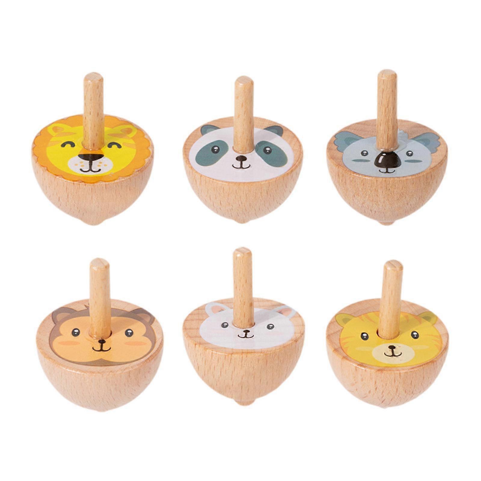 6Pcs Wood Rotation Top Toy Handmade Wooden Top for Kids Party Supplies Games animal