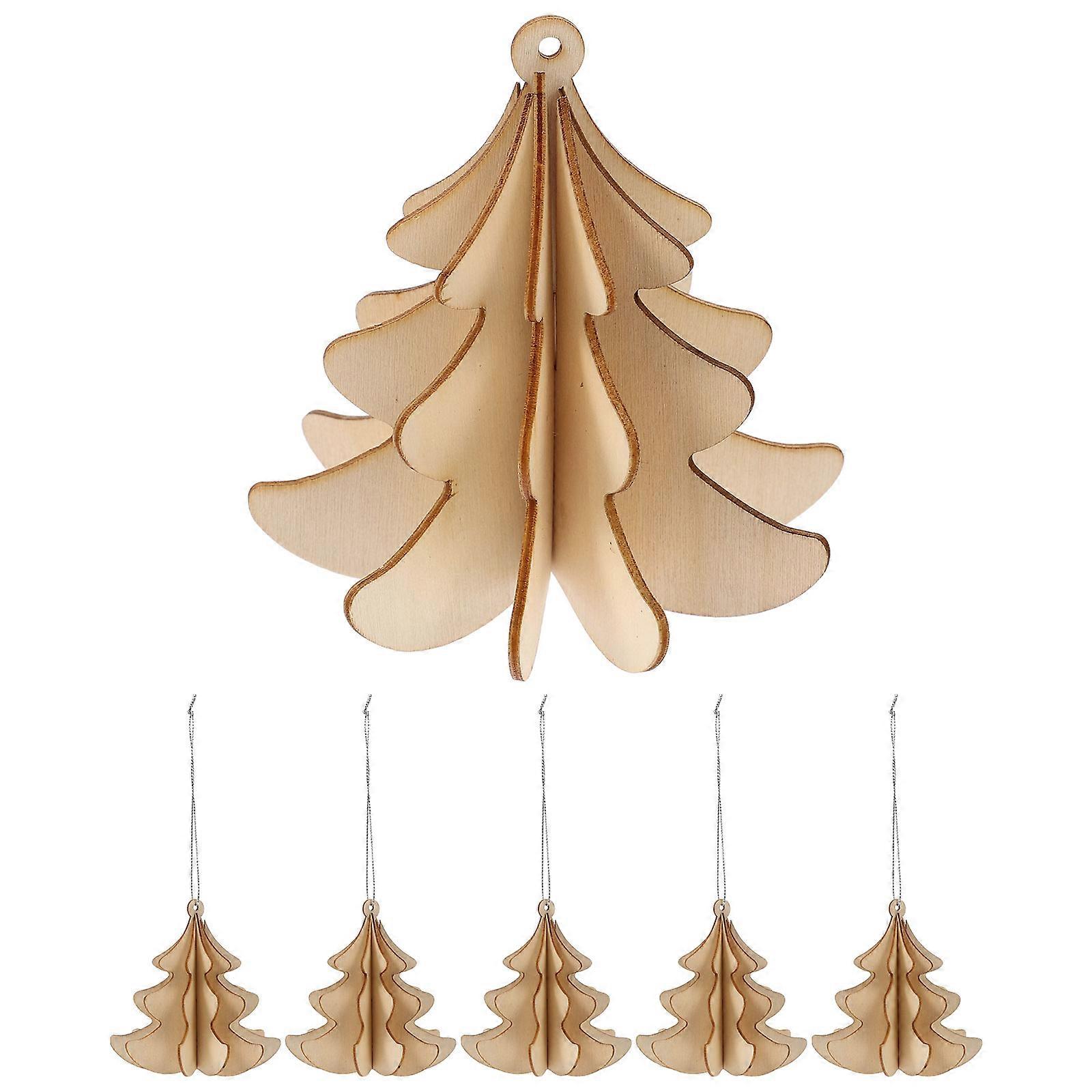 6pcs Unfinished Wooden Christmas Tree Ornaments for DIY Crafts, Hanging Pendants for Holiday Decor & Creative Painting Projects