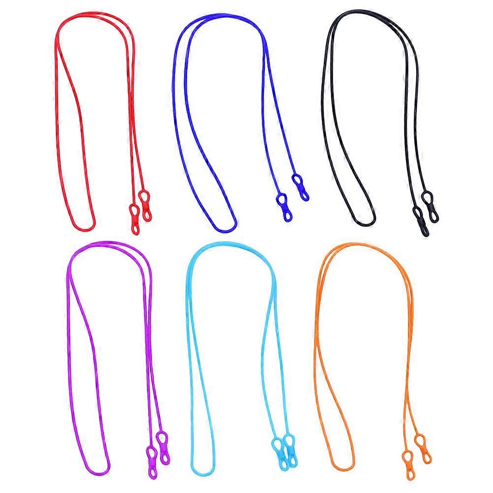 6pcs Flexible Silicone Glasses Lanyards for Neck Hanging Elastic Eyewear Holders for Sports & Outdoor Activities Black, Red, Orange, Blue, Purple