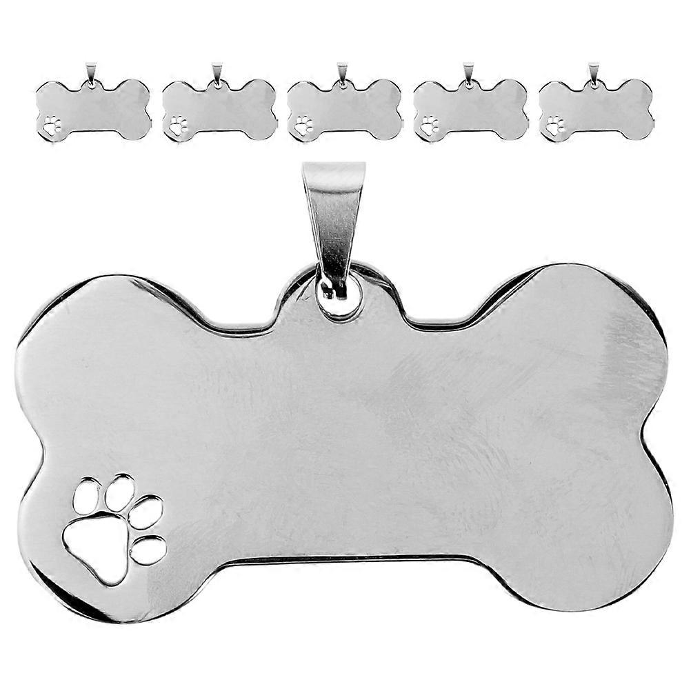 6Pcs Dog Identification Tags Bone Shape Engraving Tags for Dogs Silver Stainless Steel