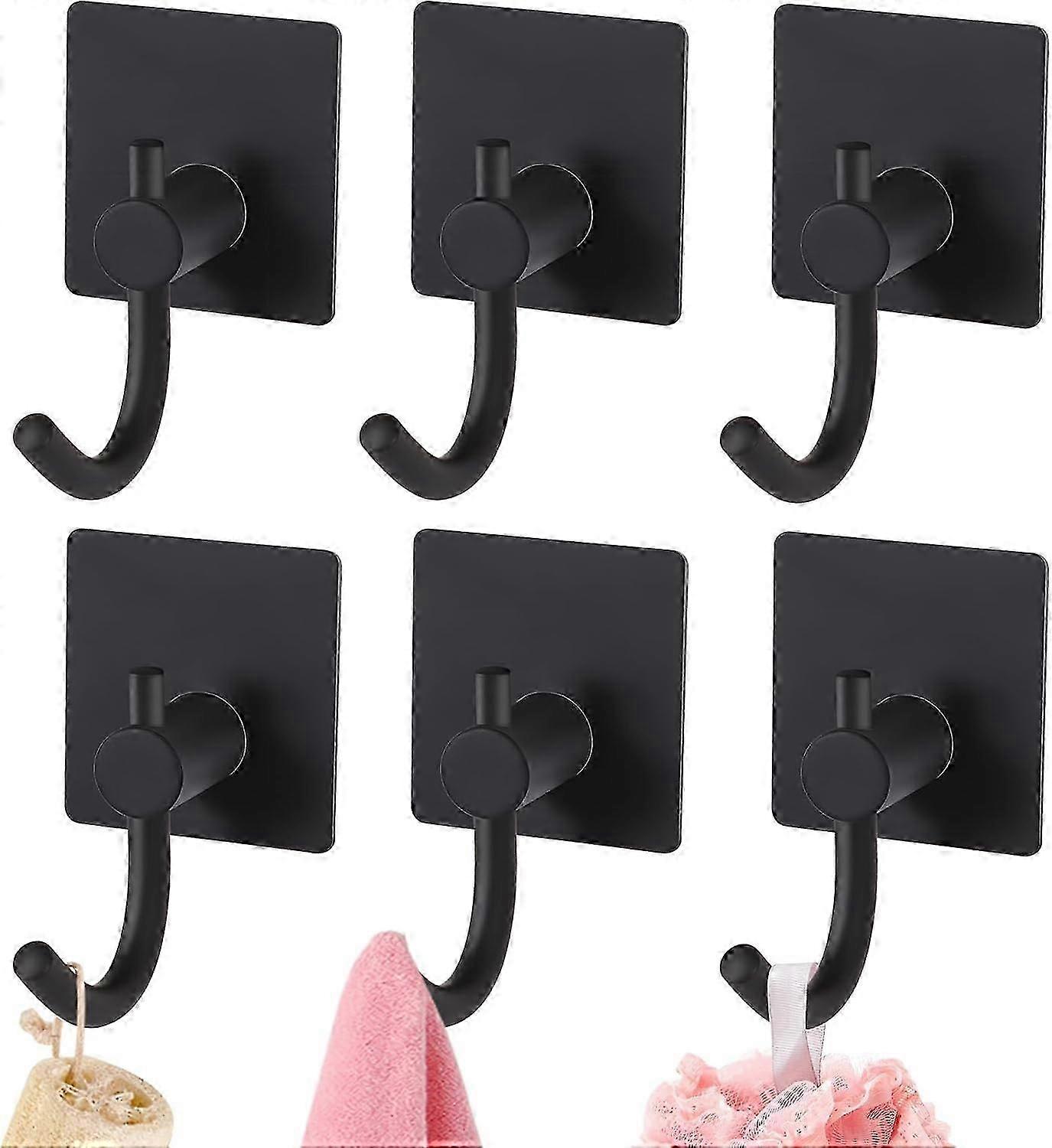 6 Pcs Self Adhesive Hooks, Stainless Steel Heavy Duty Stick On Hooks Bathroom Towel Hooks Coat Hooks Wall Mounted Robe Hook--