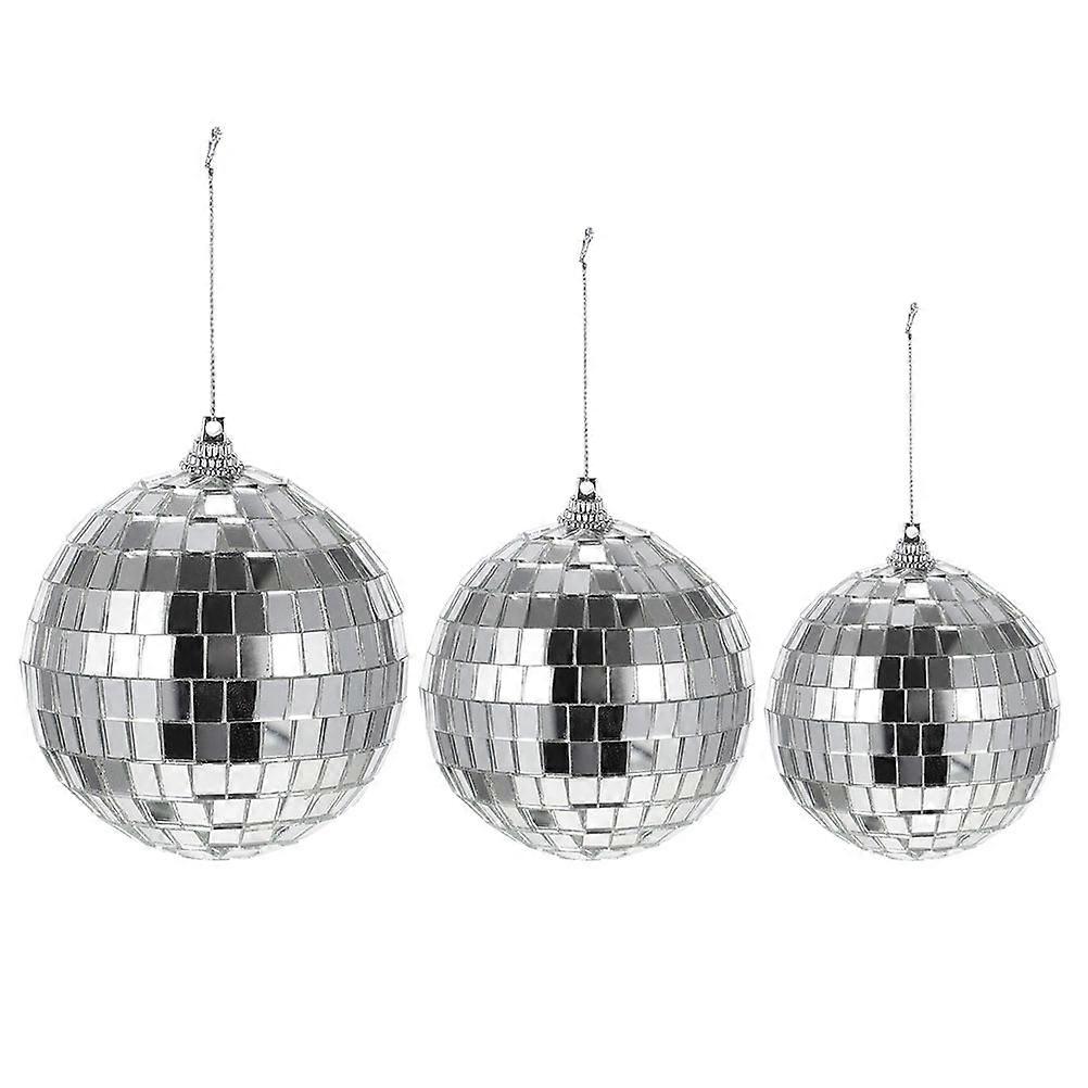 Description Dance and enjoy with these cool and fun silver hanging party disco ball. Our mirror disco ball is made up of premium materials, covered with shiny mirrored squares, our Mirror Ball can create so much sparkle. Perfect for party, cake, tree, vase, ceiling decorations. Features -Color:Silver -Material:Glass and plastic -Size:5.00X5.00X5.00cm/1.97X1.97X1.97in -Size:6.00X6.00X6.00cm/2.36X2.36 X2.36 in -Size:8.00X8.00X8.00cm/3.14X3.14 X3.14 in -Design with a hanging loop, it is hanging easily and it will be a great addition to your party decorations. -Hanging them on the ceiling, window or doorways, add some freshness to any boring room. -Shows even shiny and wonderful impression if you use rotating motor and spotlight. -Can be used in 70's disco party, adult dance party, wedding, birthday party and more. -Made of premium glass and plastic material, durable for lasting use. A gift for your friend and family. Package List6 x Mini Balls