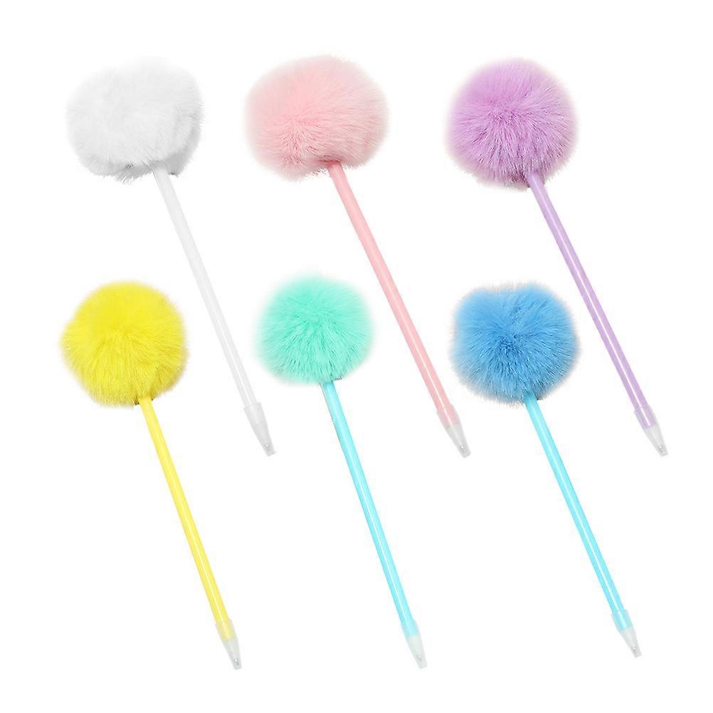 6 Pcs Vibrant Ink Pompom Ballpoint Pens for , Fluffy Decorative Tops, Portable School & Office Supplies