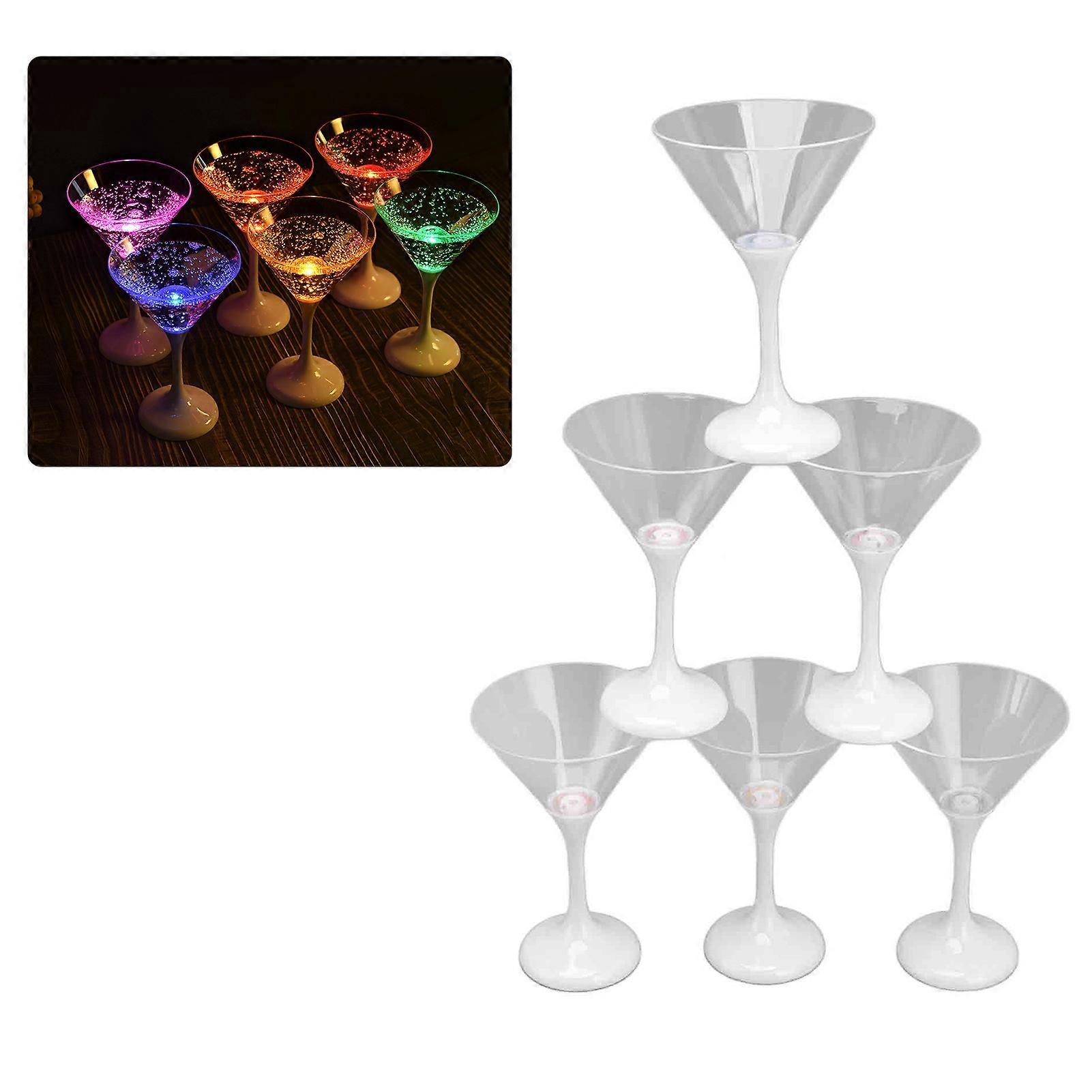 6Pcs LED Light Up Flashing Plastic Martini Glasses 210ml LED Cocktail Glasses with Stem Party Prop Glow Cup
