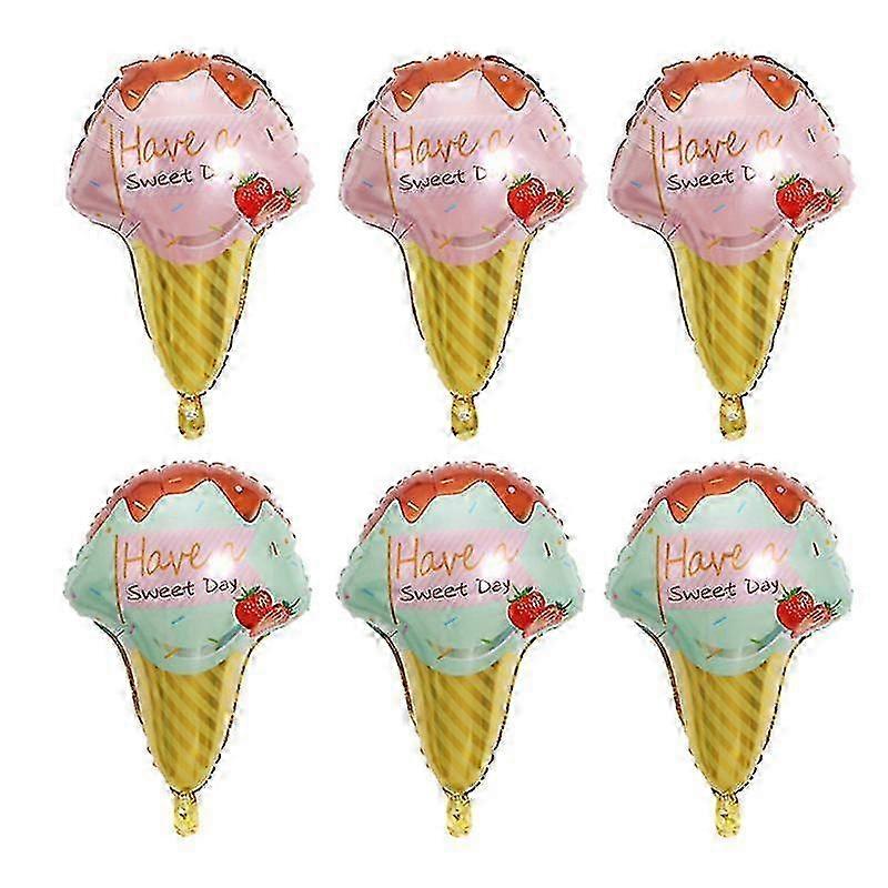 6 Pcs Ice Cream Aluminum Foil Balloons Decorative Party Balloons for Birthday Baby Shower Wedding (Green and Pink)
