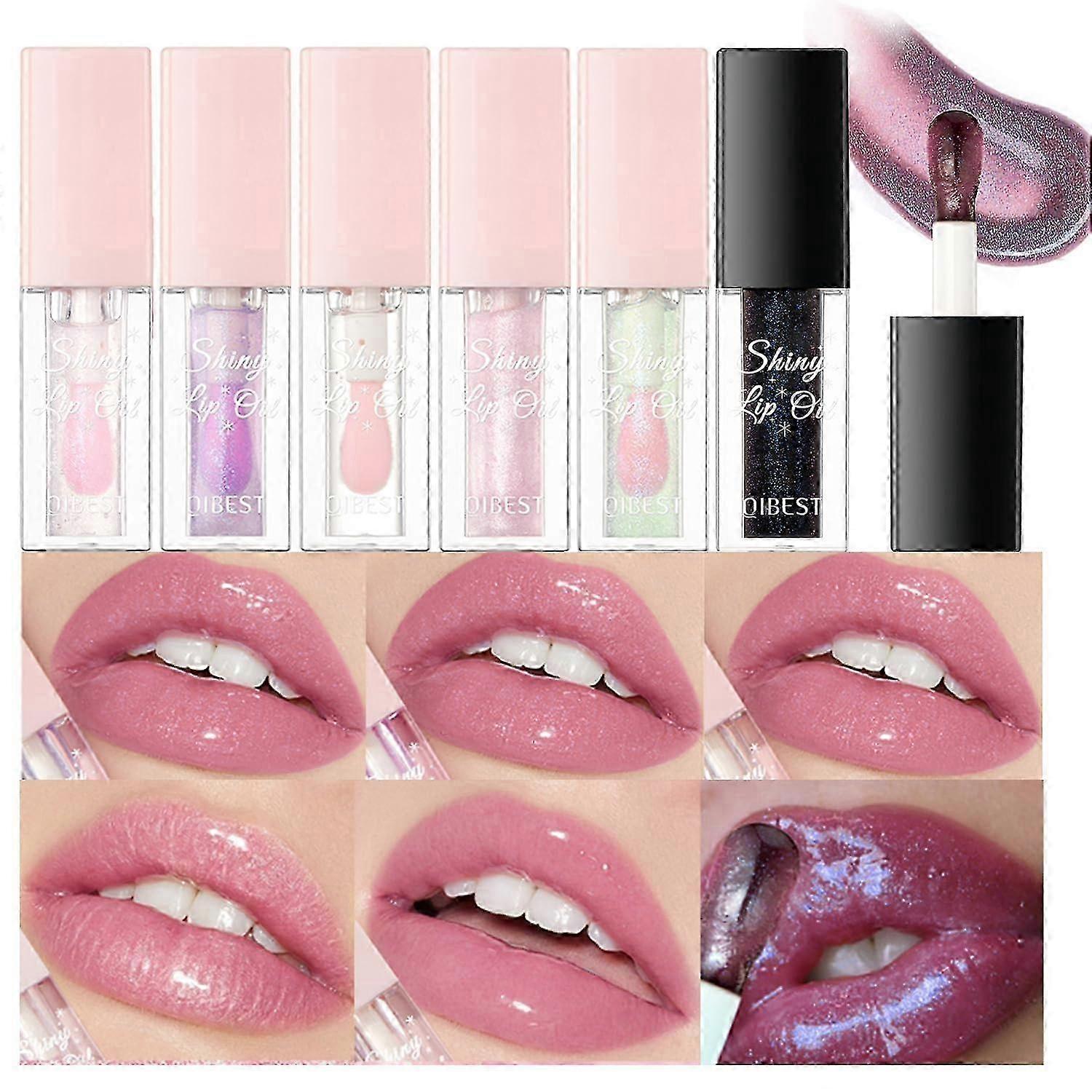 6Pcs Color Changing Lip Oil Light Lipgloss Set, Moisturizing Hydrating Lip Glow Oil Lip Gloss Kit High Shine Lip Plumping Glass Finish Lip Gloss