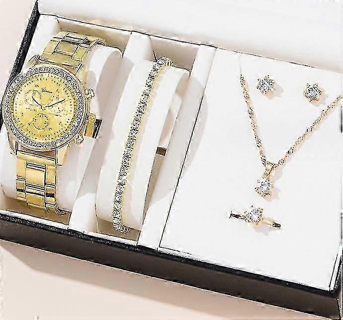 6 Pcs Gift Set Women's Watch Ring Necklace Earrings Rhinestone Jewelry Set Christmas Valentine's Day Gift