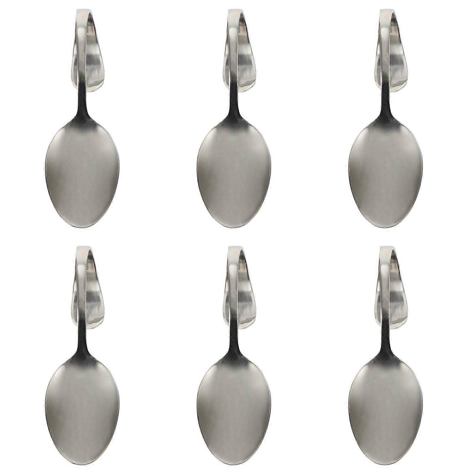 6Pcs Stainless Steel Curved Handle Spoons Western Food Salad Scoops (Silver)