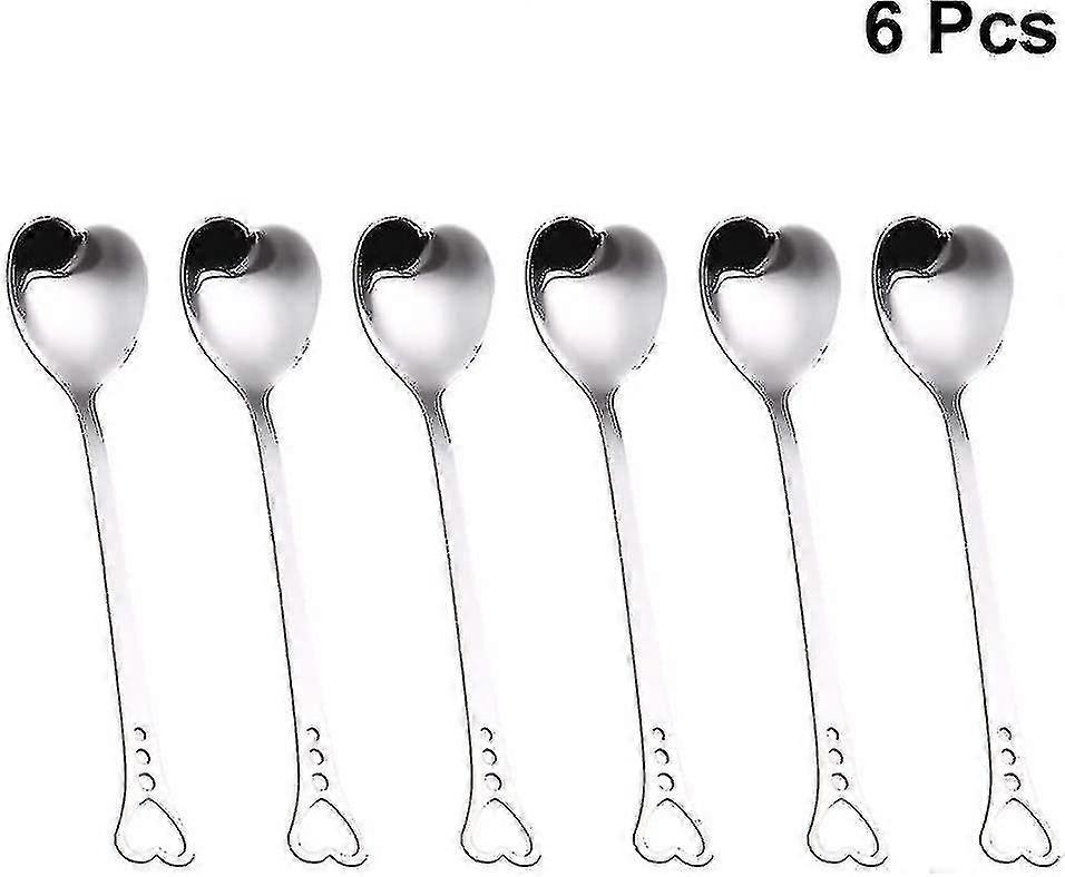 6 Pcs Stainless Steel Heart Spoons Dessert Spoons Coffee Spoons A