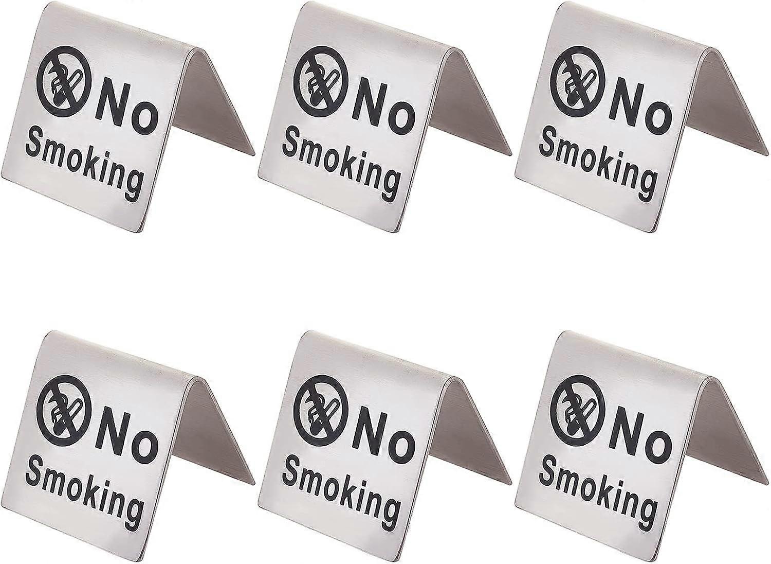 6 Pcs Stainless Steel No Smoking Table Sign Double Side Stainless Steel No Smoking Sign Card No Smoking Table Tent Signs Restaurant Office Non-Smoking