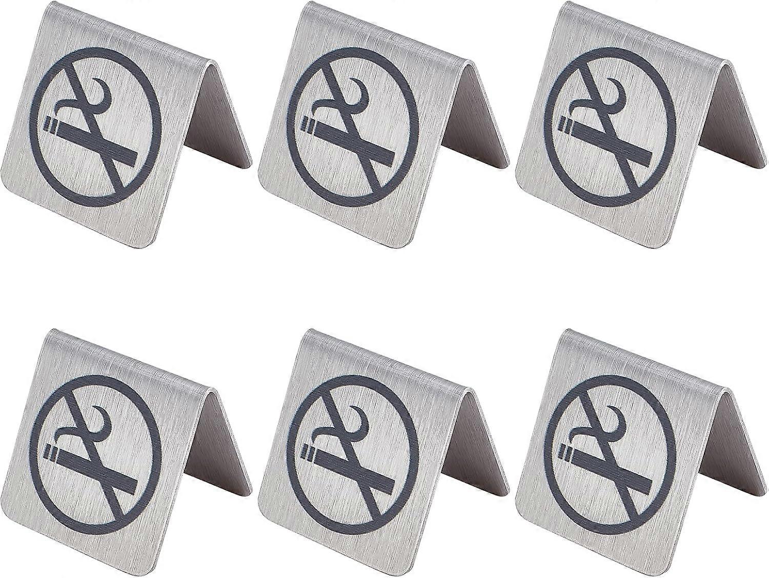 6 Pcs Stainless Steel No Smoking Table Sign Reservation Signage Board Warning Sign No Smoking Sign Card Hotel Office Non-Smoking Desk Logo Indicator 4