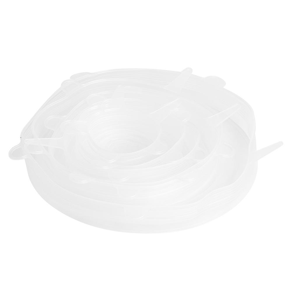 6Pcs/Set Kitchen Silicone Reusable Food Fruit Storage Preservation Stretch Cover Lids for BowlWhite