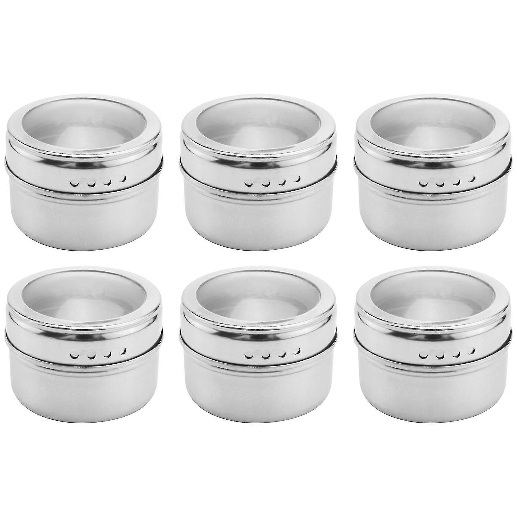 6pcs / Set Clear Lid Magnetic Spice Jar Stainless Steel Spice Sauce Storage Container Pots Kitchen