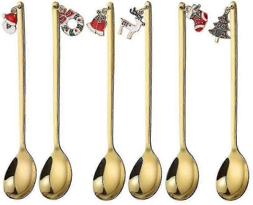 6 Pcs/set Christmas Stainless Steel Spoon Set Creative Gold-plated Coffee, Dessert Spoon Home Kitchen Mixer Spoon (gold)