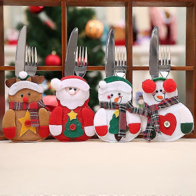 6pcs/set Christmas Tableware Set, Knife And Fork Set, Christmas Table Decoration Set, Santa Claus Snowman Christmas Decoration Supplies -dd