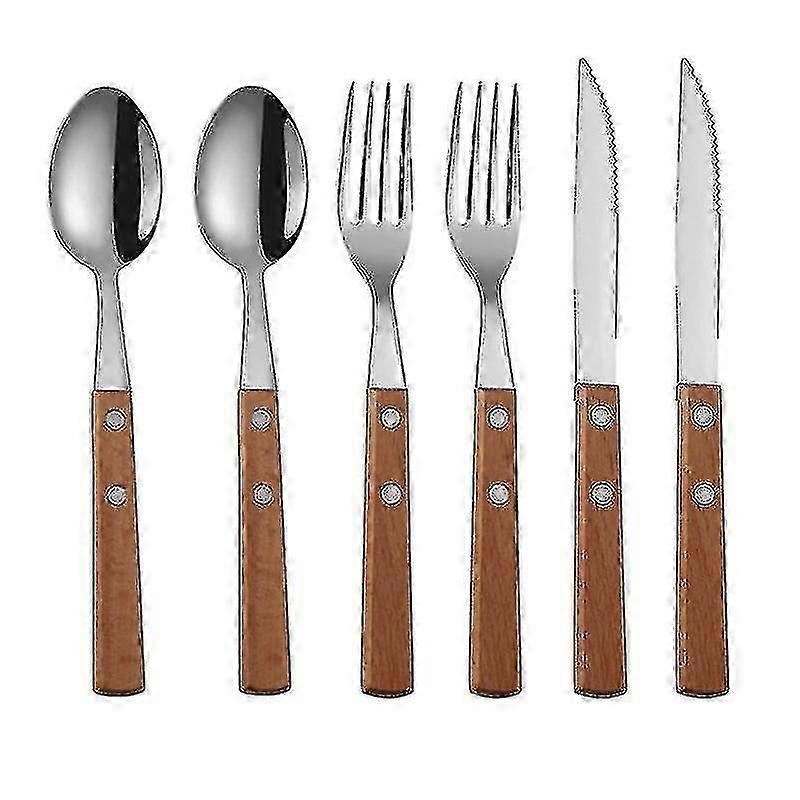 6pcs/set Stainless Steel Cutlery Set With Wood Handle Holder Fork Spoon Knife Set Kitchen Dinnerware