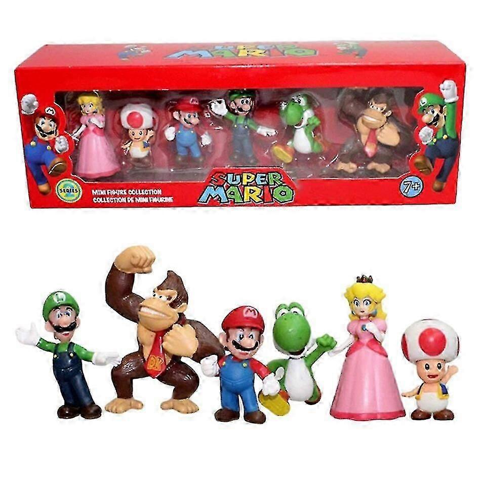 6pcs/set 4-7cm Super Mario Bros Pvc Action Figure Toys Dolls Model Set Luigi Yoshi Donkey Kong Mushroom For Kids Birthday Gifts