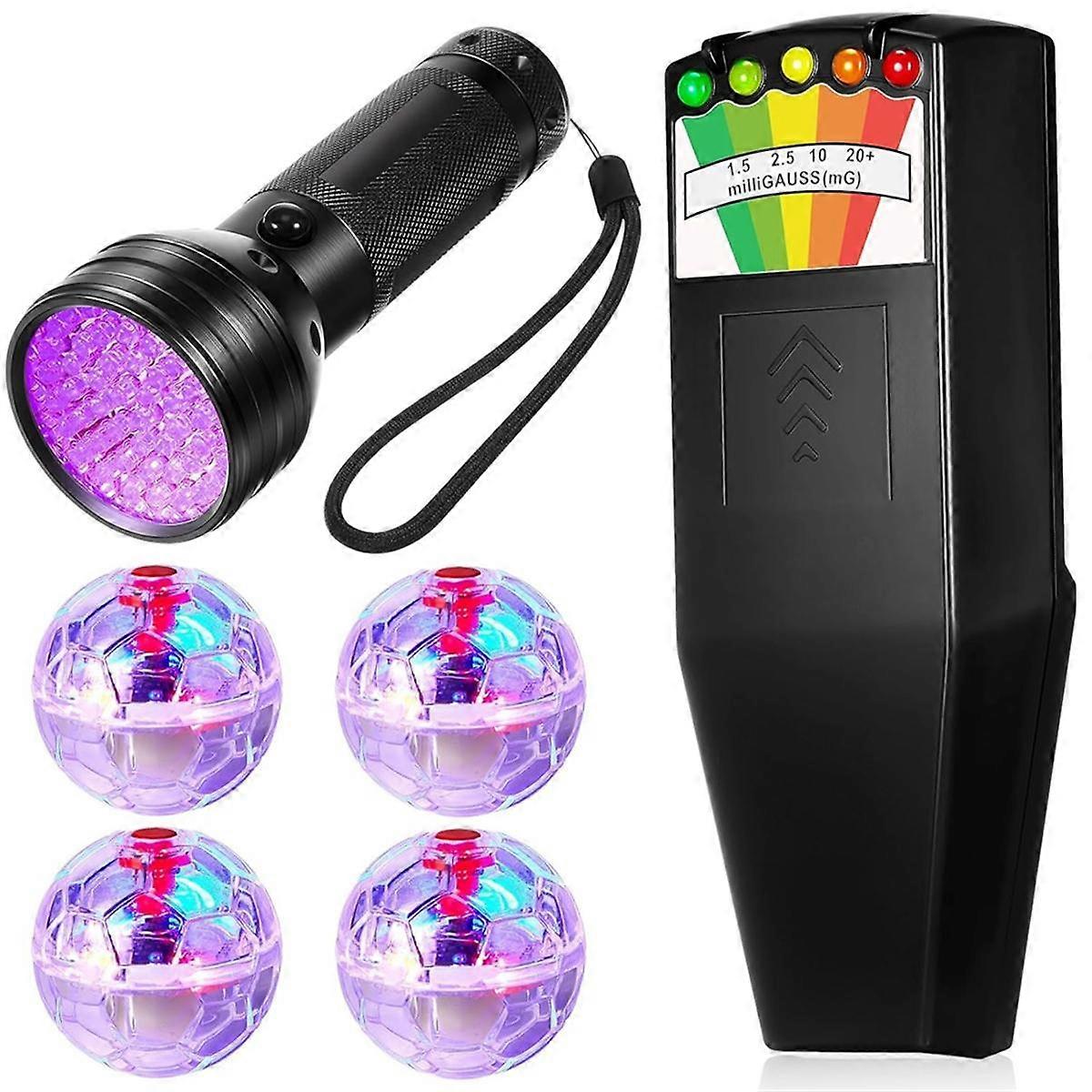 6Pcs Halloween Ghost Unting Equipment Kit Meter UV Flashlight Black Light Motion Light Up Cat Balls for Home and Office