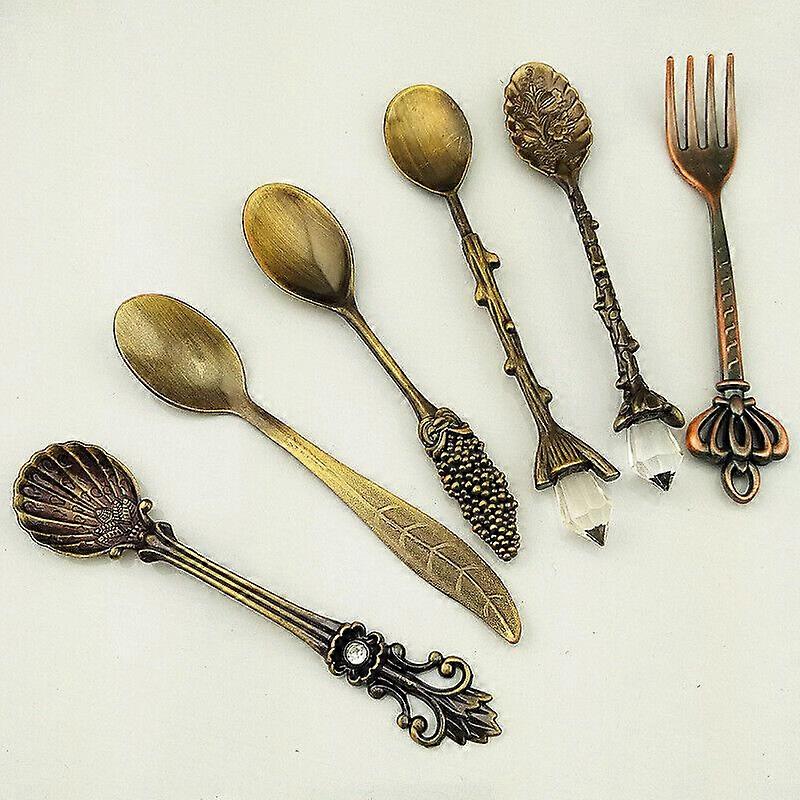 6Pcs Vintage Small Coffee Dessert Tea Spoon Ice Cream Cake Scoop Carving Forks