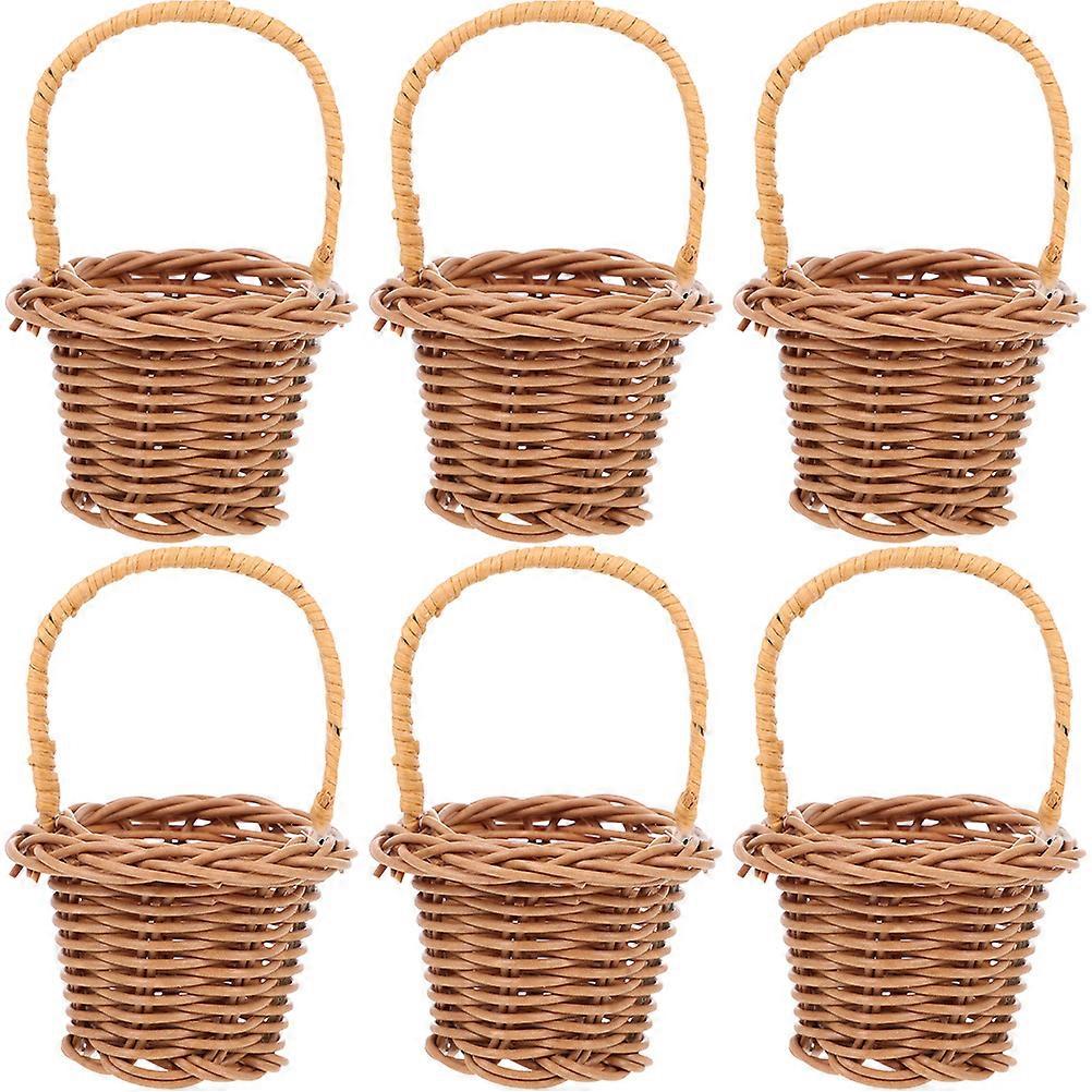 6Pcs Mini Flower Basket Small Woven Basket Decorative Tiny Rattan Basket Handheld Mini Basket Decor
