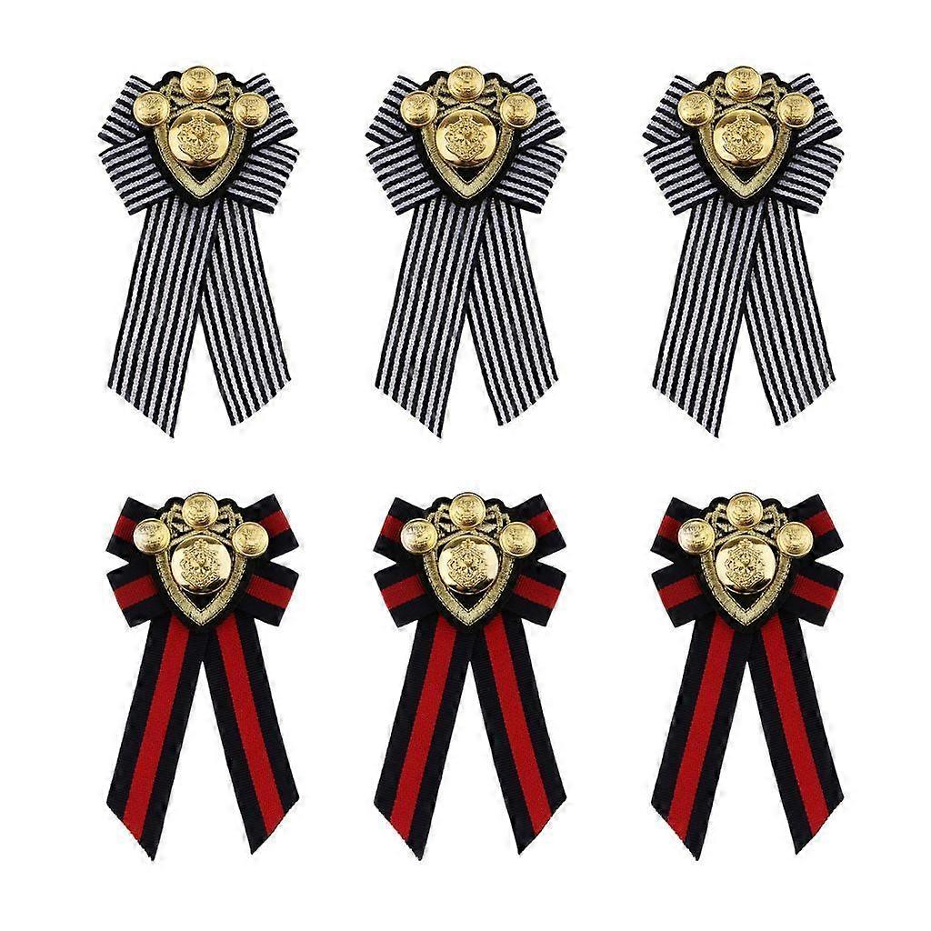 6Pcs Women's Red Black Stripes Design Bow Tie Brooch Ribbon Striped Collar