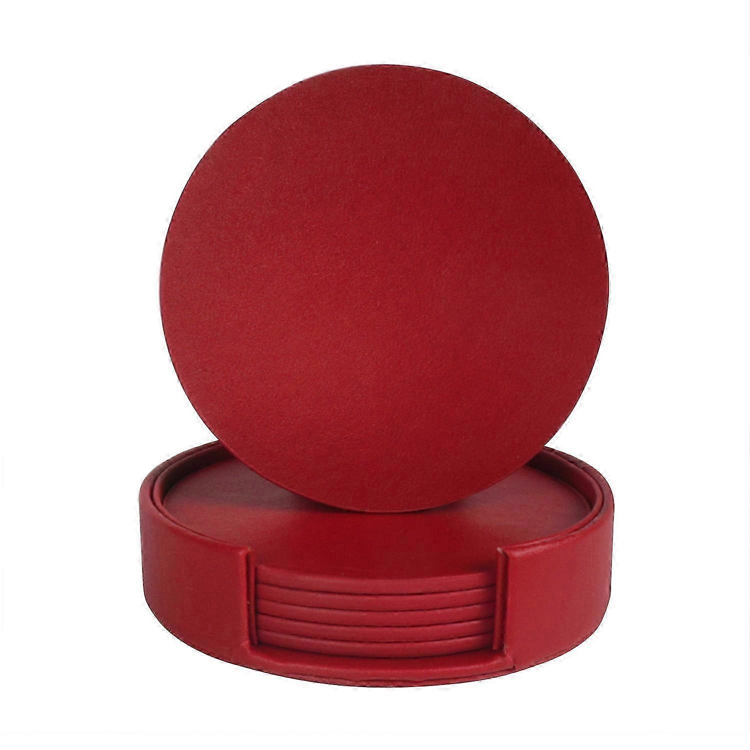 6Pcs Double-Sided Faux Leather Coasters Set for Heat Insulation & Table Protection - Dark Red