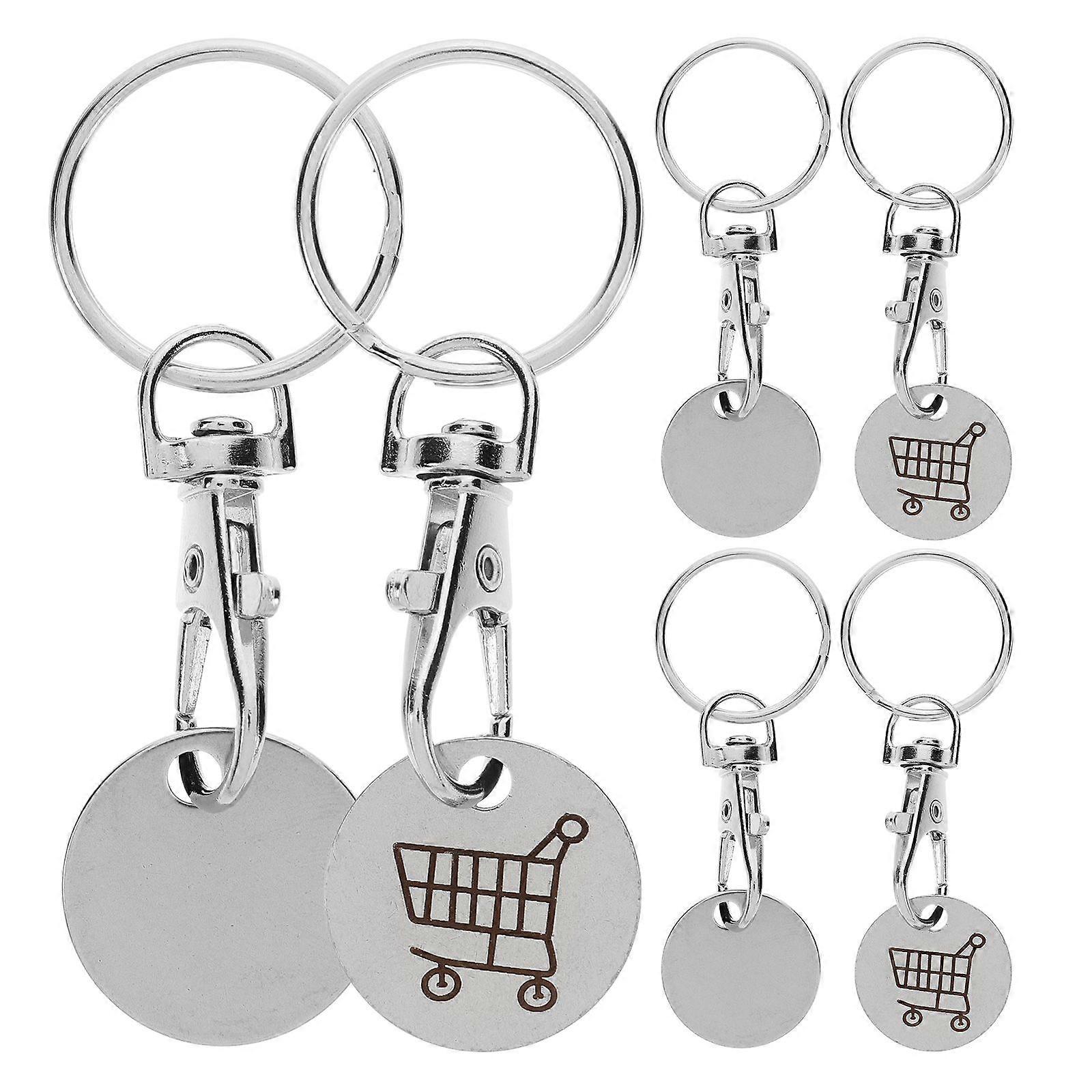6Pcs Stainless Steel Shopping Trolley Tokens Keyring Trolley Tokens Portable Trolley Removers Hanging Trolley Tokens for Supermarket Cart