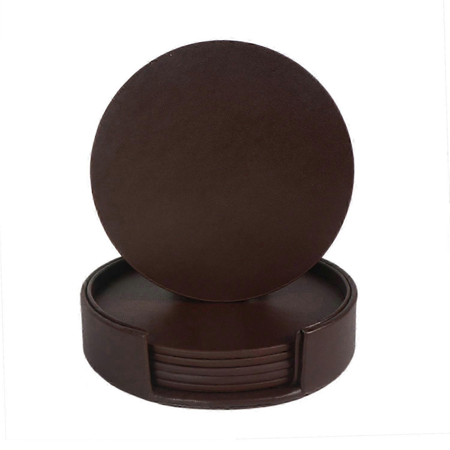 6Pcs Double-Sided Faux Leather Coasters Set for Heat Insulation & Table Protection - Dark Brown