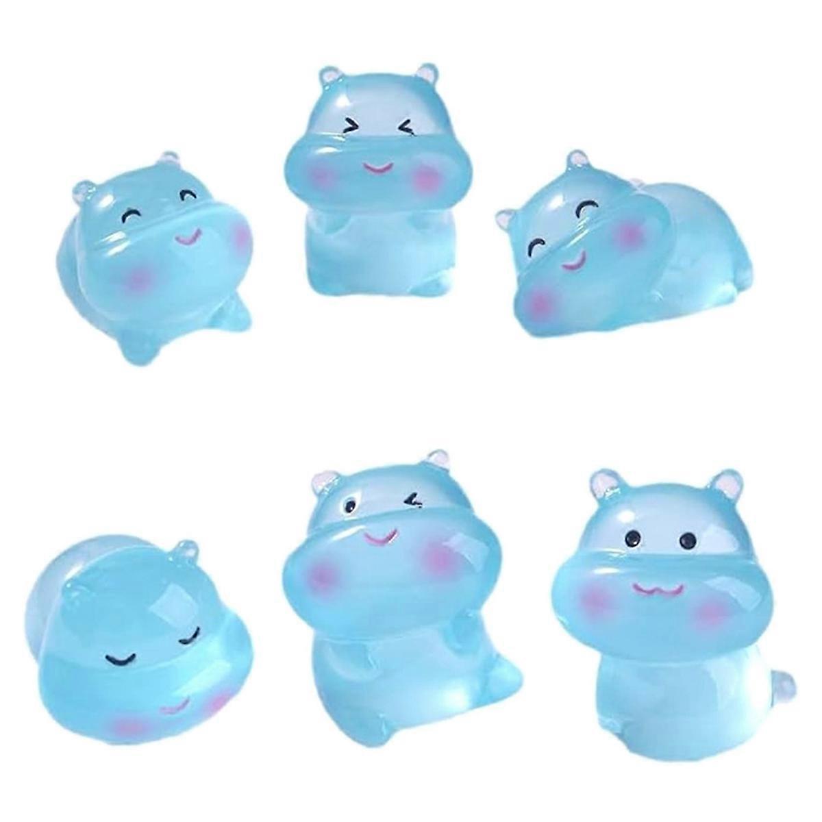 6PCS Luminous Mini Resin Hippos Ornament, Garden Landscape Aquarium Ornament Potted Plants Decor for Toys Crafts Decor