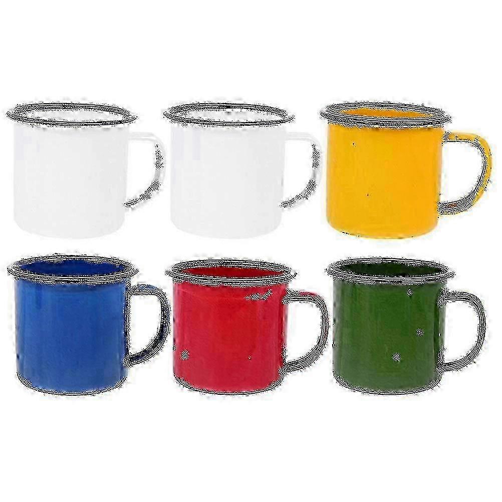 6pcs Handheld Enamel Mugs Retro Style Enamel Cups Colored Enamel Mugs Thick Coffee Milk Mugs