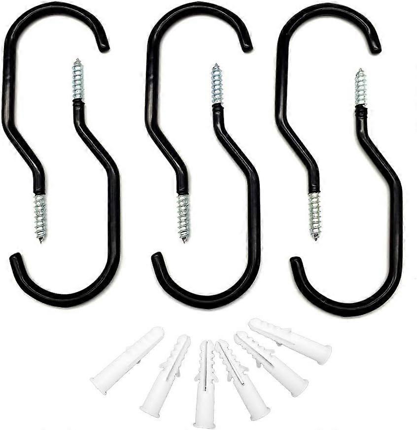 The bicycle hooks are made of sturdy and durable stainless galvanized steel and coated with PVC. They are covered with a soft non-slip and non-slip coating that protects the surfaces. Length: 15cm (Screw length: 4cm), the maximum diameter of your bike wheel should not exceed 5cm. Each bike hook can support up to 15kg / 33 pounds, not ideal for heavier bike weights. You'd better use 2 bike hooks to hold an adult bike or some heavy duty product. The vertical bike rack saves space and is very cost effective compared to a traditional bike rack. Easy to install. These hooks allow you to lift your bike, leisure equipment, patio furniture and garden hoses and free up space for your garage. About the product: Suitable for ceilings and wooden walls. Also suitable for cement walls with expansion screws. Hang up your bike for simple repairs and cleaning. The maximum diameter of the wheel of your bicycle should not exceed 5 cm. This item is made with premium material for long lasting use. Specifications: Material: galvanized stainless steel and PVC coated Length: 15cm / 5.9 inch (Screw length: 4cm / 1.57 inch) color: black Item weight: 50g each Package contents: 6 x Bicycle Hooks 6 x Plastic Bolts Note: Stay away from children
