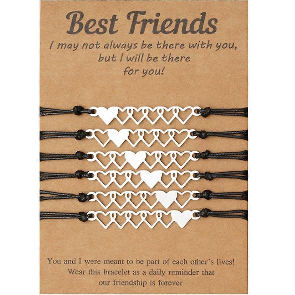 6Pcs Adjustable Bracelet Wrist Rope Heart Charm Bracelet Jewelry