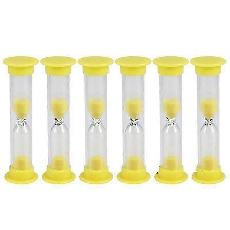 6pcs 3 Minutes Sandglass Plastic Sandglass Mini Children Brushing Timer Sand Clock Timers For Kids (Yellow)