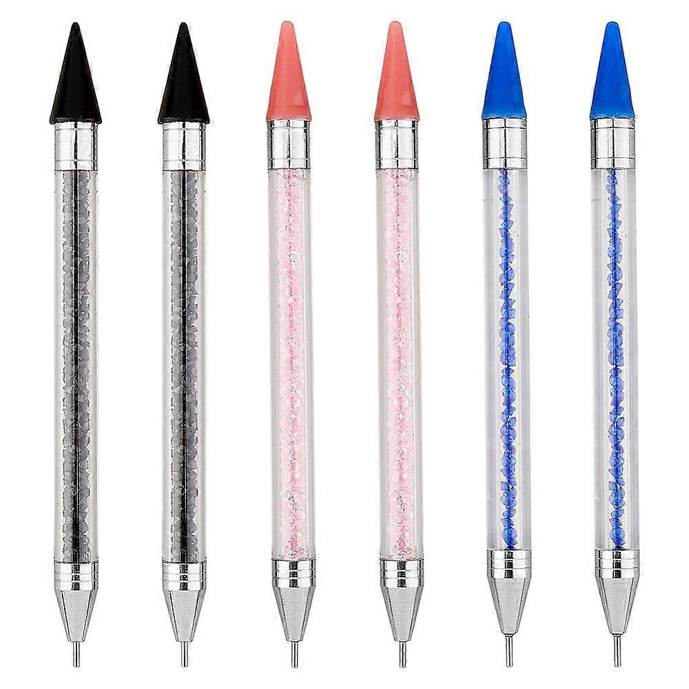 6Pcs 6 Styles Plastic Nail Art Rhinestones Pickers Pens with Wax & Stainless Steel Pen Head Nail Art Dotting Tools Point Nail Art Craft Tool Pen Mixed