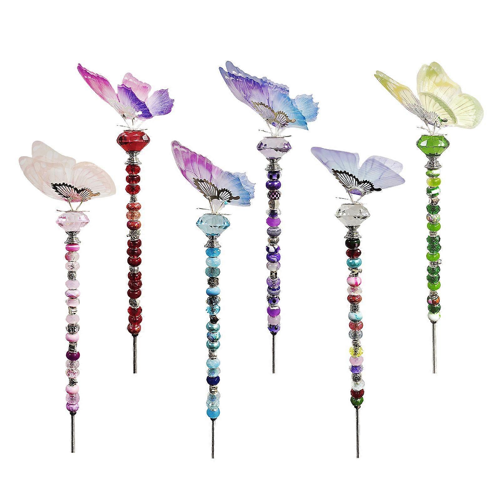 Durable Plastic Material: Crafted with durable plastic large hole beads, this butterfly beaded garden stake decoration ensures longevity and resilience against outdoor elements. The sparkling rhinestones add a touch of elegance, reflecting sunlight beautifully for a captivating garden display.