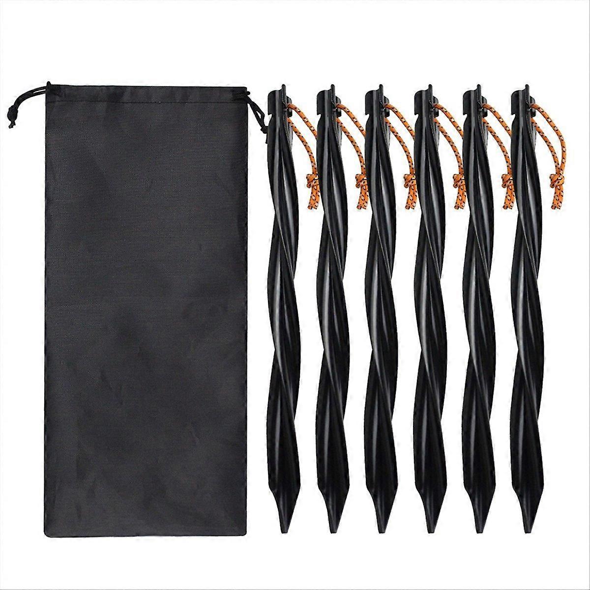 6X 25cm Outdoor Tent Pegs Ground Nails With Storage Bag Black