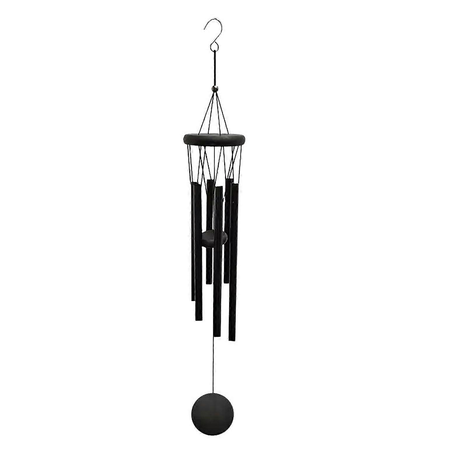 Black Wind Chime with 6 Metal Tubes S-shaped Hook Natural Soothing Melody Garden Patio Outdoor Decoration Hanging Wind Bell Pendant Birthday Gifts