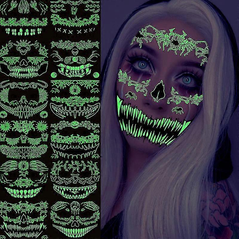 6 Sheets Scary Halloween Face Tattoos Glow In The Dark Temporary Tattoo Stickers For Women Men, 3d W