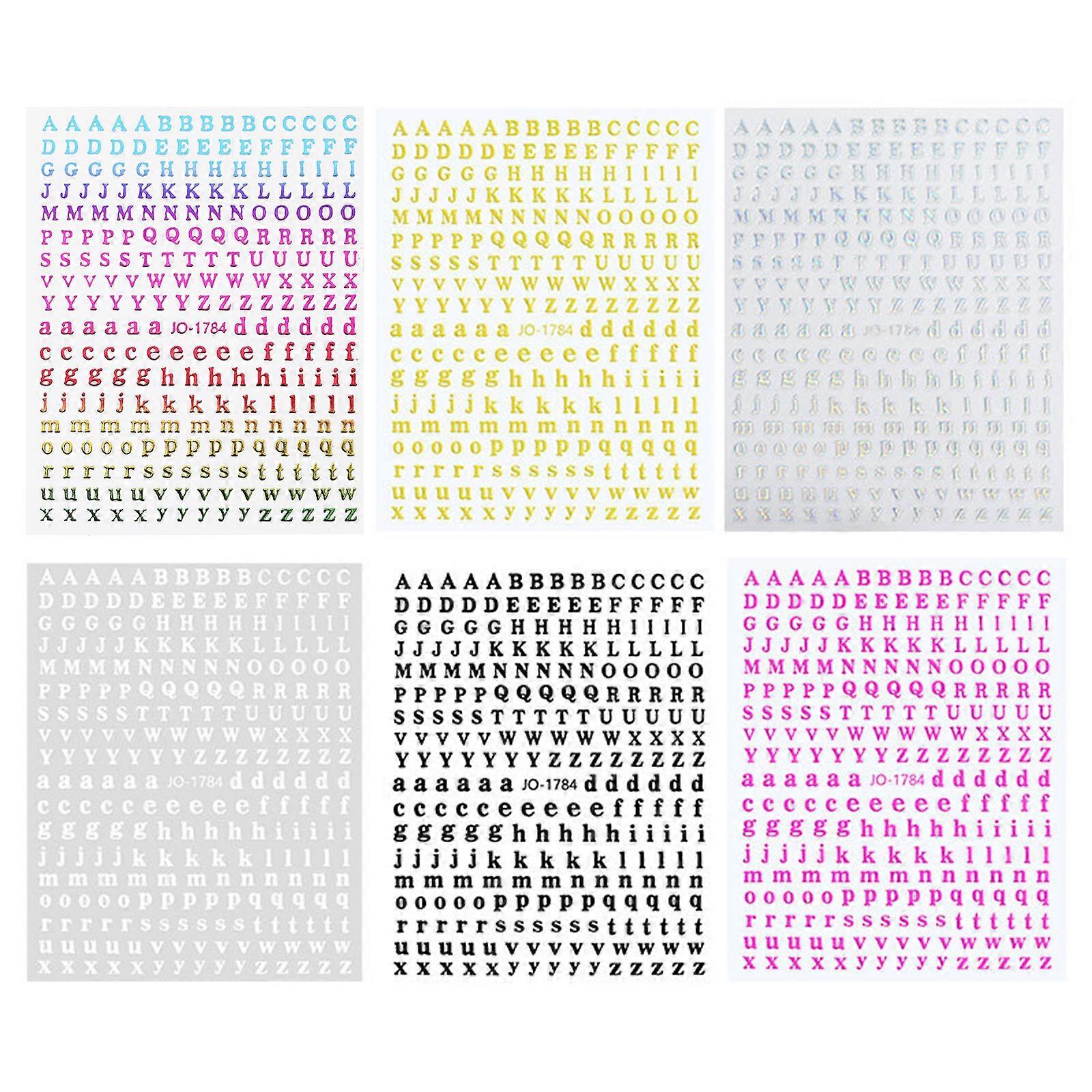 6 Sheets Letter Nail Art Sticker,Letter Words English Alphabet Nail Decals Nail Self-Adhesive Sticker 3D Nail Art Decor