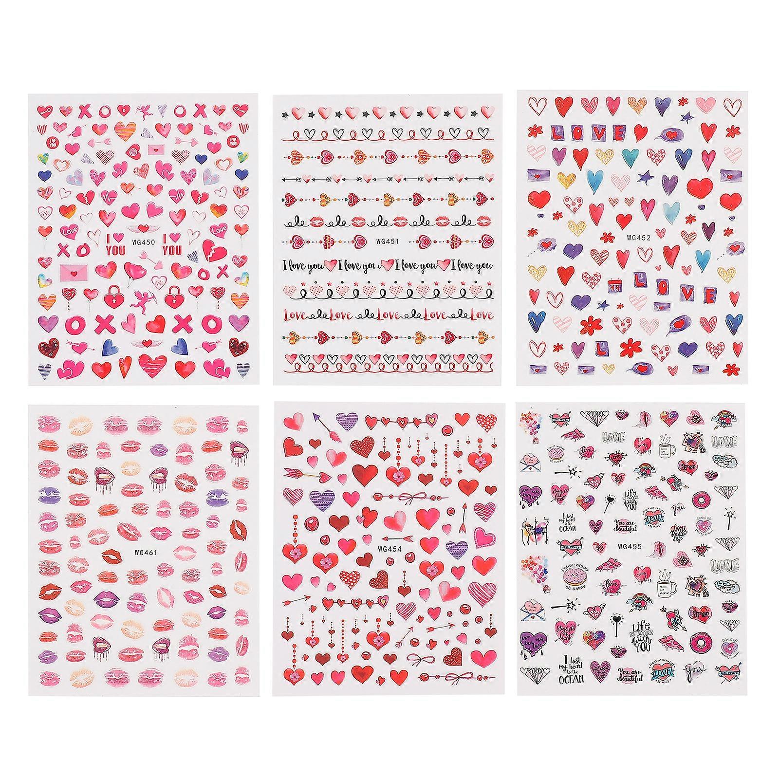 6 Sheets Heart Nail Stickers Heart Love Kiss Nail Decals Love Tattoos Sticker Valentine S Day Nail Decals