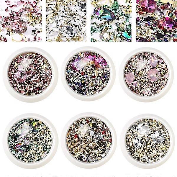 6 Assorted Mixed Nail Art Rhinestones Stones Diamonds Crystals Pearls Gems for 3D Nail Art Decoration