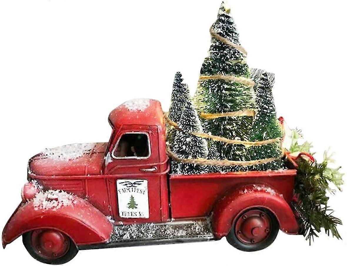 6in Christmas Red Truck Decor Farmhouse Vintage Pickup With Trees For Home Xmas Holiday Supplies