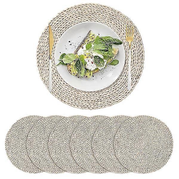 6-pack, Woven Corn Leaf Placemats, Natural Round Rattan Table Mats, Straw Braided Coasters for Dining