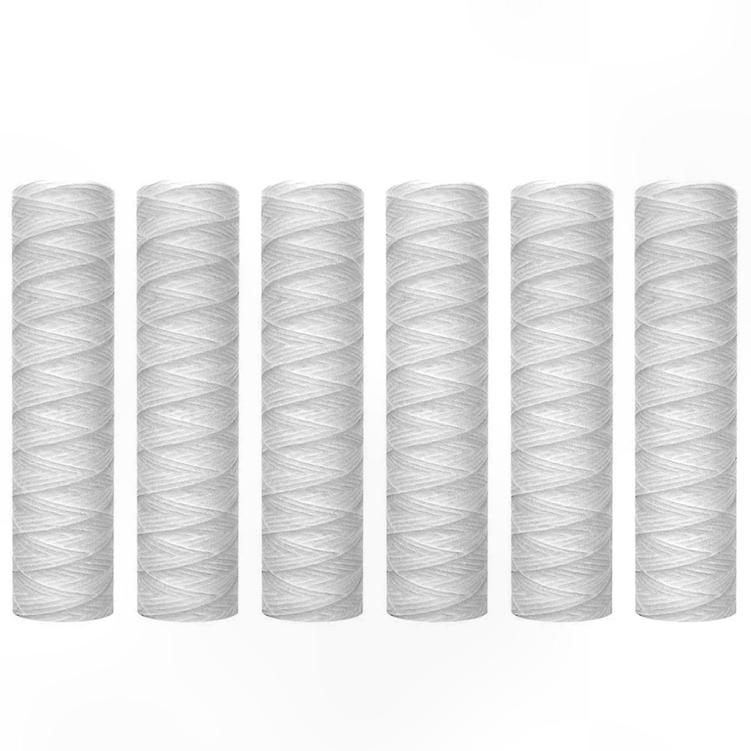 6-Pack String Wound Sediment Water Filter Cartridges, 10 Micron, Universal Fit for Home and Industrial Filtration Systems