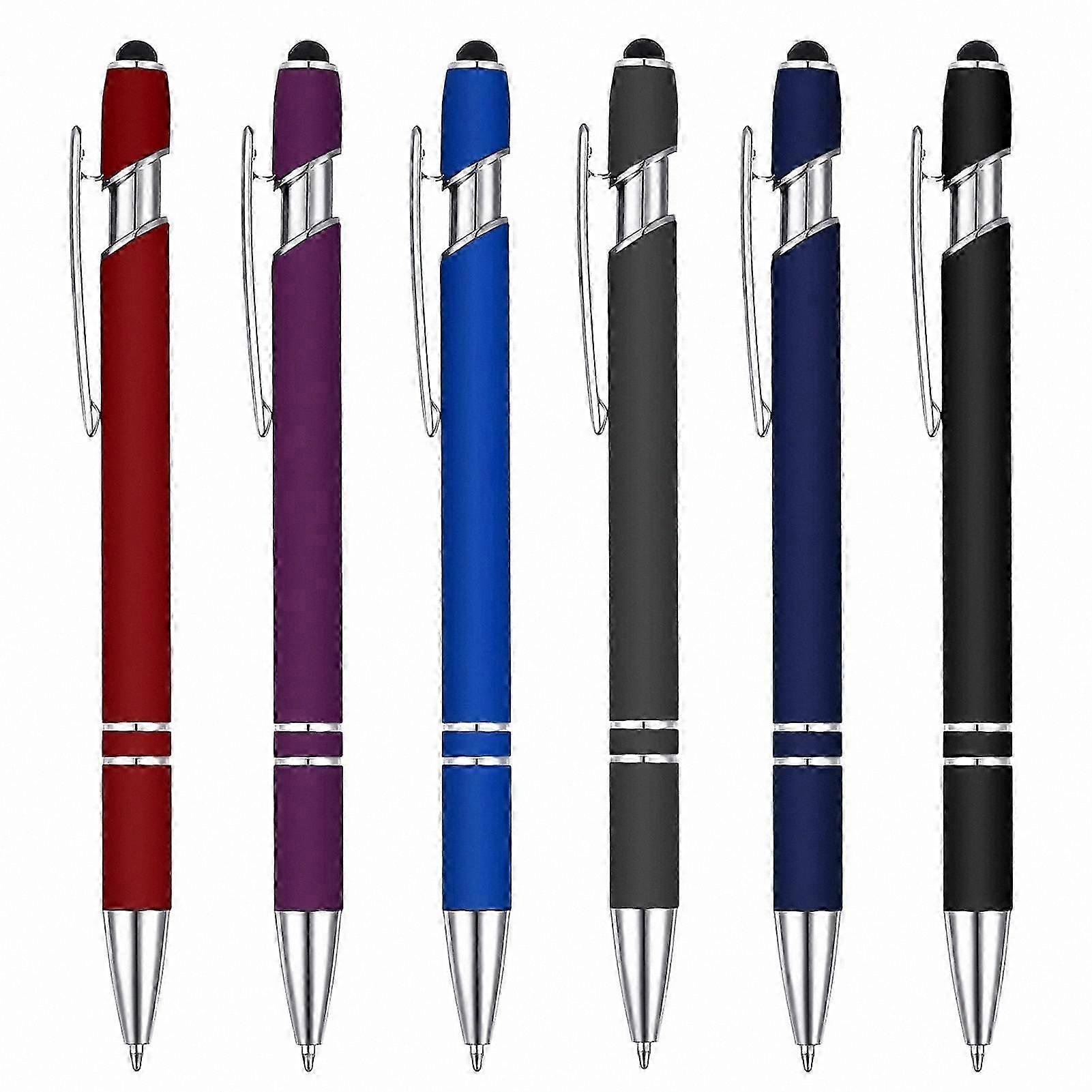 6-Pack Fine Point 0.5mm Black Ink Pens with Stylus Tip, Retractable Metal Ballpoint and Touchscreen Stylus Combo, Perfect for Gifts and Daily Use