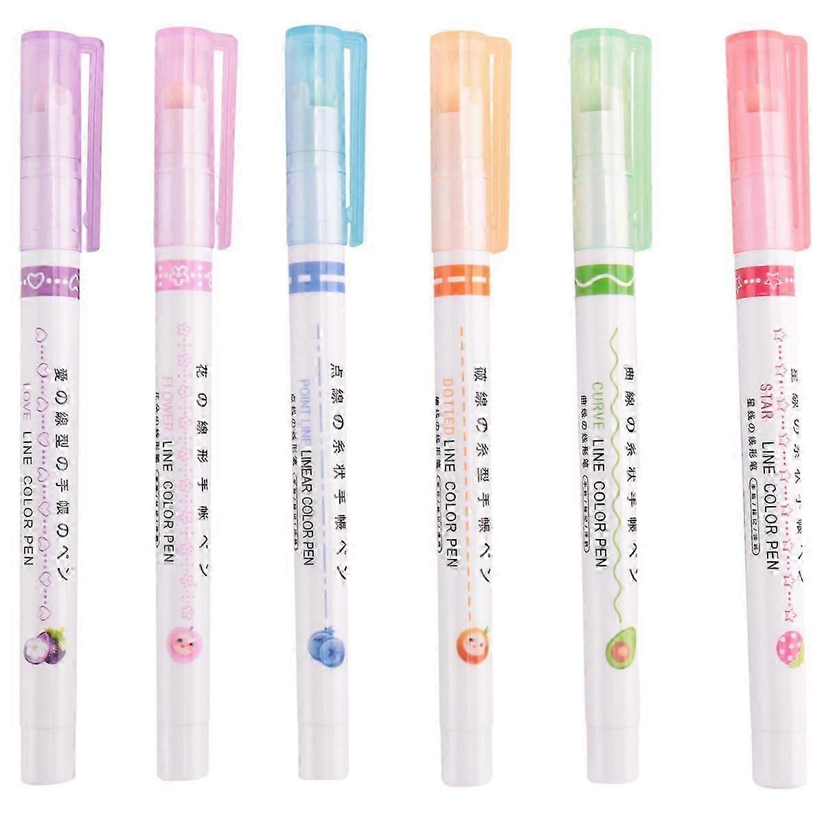 6 Piece Curve Highlighter Set with 6 Different Curve Shape Tip Pens, Colorful Curve Pens, Highlighte